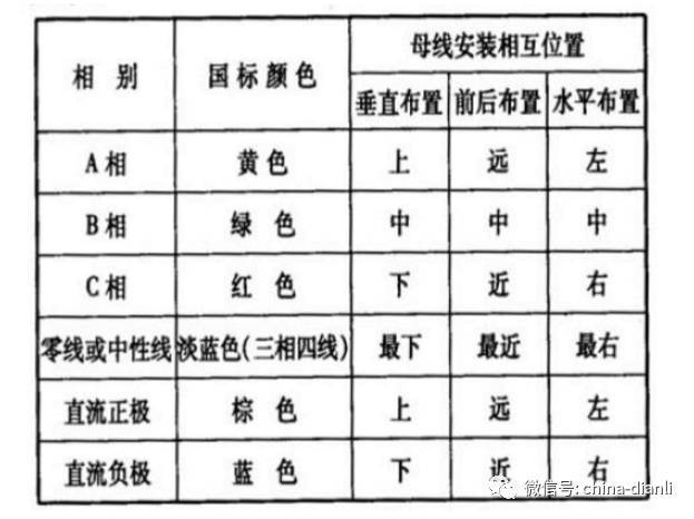 開關(guān)柜母線相序位置與國家標(biāo)準(zhǔn)顏色比較如表所示