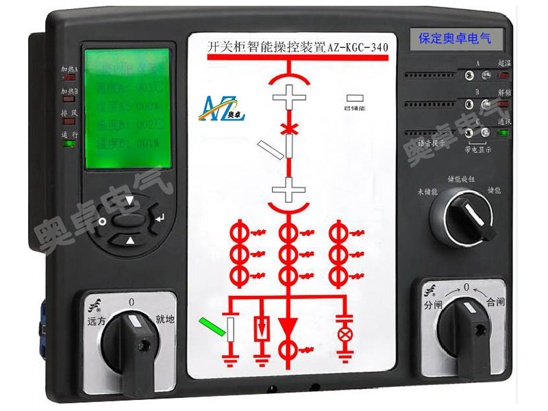 保定奧卓電氣設(shè)備制造有限公司生產(chǎn)的AZ-KGC-340高壓開關(guān)柜智能控制裝置具有語音防誤提示+現(xiàn)場顯示及鎖定功能+動態(tài)模擬圖+溫濕度設(shè)定及液晶顯示+遠(yuǎn)程/本地、開/關(guān)、儲能、照明操作功能+開/關(guān)電路完整性指示+預(yù)開/關(guān)預(yù)閃指示+人體感應(yīng)探頭+電量檢測+RS485通訊接口等功能。