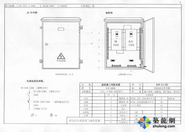 (1) 配電箱(機(jī)柜)應(yīng)按照《低壓成套開關(guān)設(shè)備和控制設(shè)備》GB7251.4第四部分規(guī)定的施工現(xiàn)場成套設(shè)備(ACS)的特殊要求和《施工現(xiàn)場臨時(shí)用電安全技術(shù)規(guī)范》JGJ42005的標(biāo)準(zhǔn)要求制造。