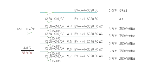 C65n-C16/3pw l5bv-4 * 4-sc 20 fcw c 3.7 kw380 v空調(diào)插座:
