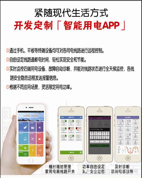 “智能配電箱”是一款通過手機(jī)實(shí)現(xiàn)家庭用電管理,提高用電安全性和家庭智能的產(chǎn)品。無論您身在何處,業(yè)主本人(及物業(yè))都能掌握和處理短路、漏電、過載、超溫、過壓、過流、周期計(jì)時(shí)、功率限制、電源分析、點(diǎn)火、連接器斷電等用電功能。通過手機(jī)進(jìn)行實(shí)時(shí)監(jiān)控。所有者還可以遠(yuǎn)程管理家用電器的使用、觀看家用視頻、可視門鈴、遠(yuǎn)程開關(guān)燈等。