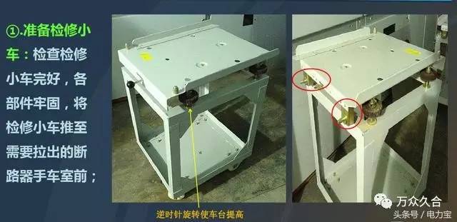 (1)慢慢將維護小車推到斷路器手車房前推入;