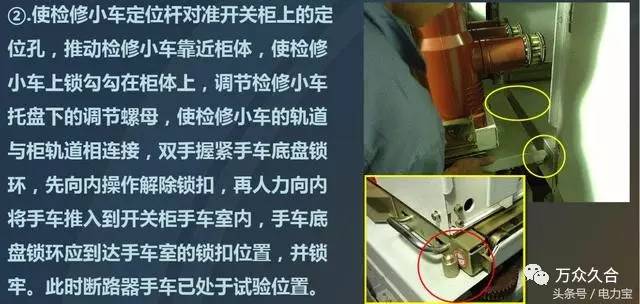 2、將斷路器從檢修車推到開(kāi)關(guān)柜手車室內(nèi)操作