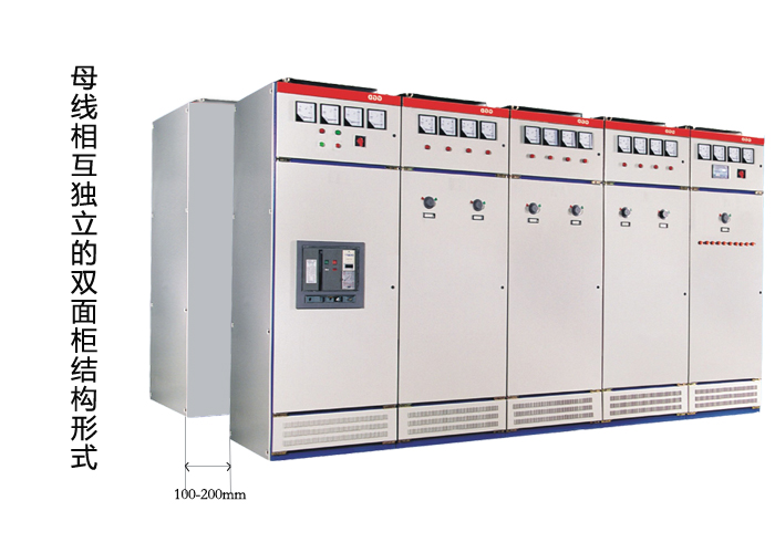 獨(dú)立總線的雙面機(jī)柜結(jié)構(gòu)實(shí)質(zhì)上是將兩組背靠背機(jī)柜安裝在一起,兩組開(kāi)關(guān)柜的后部一般相隔100-200毫米,作為總線系統(tǒng)的散熱通道。